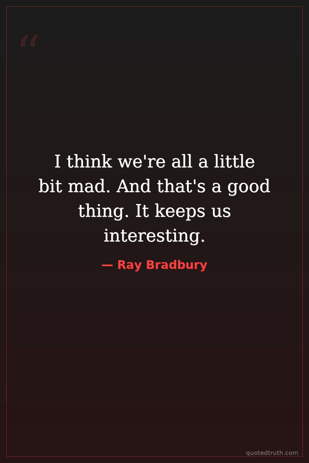 I think we're all a little bit mad. And that's a good thing. It keeps us interesting.