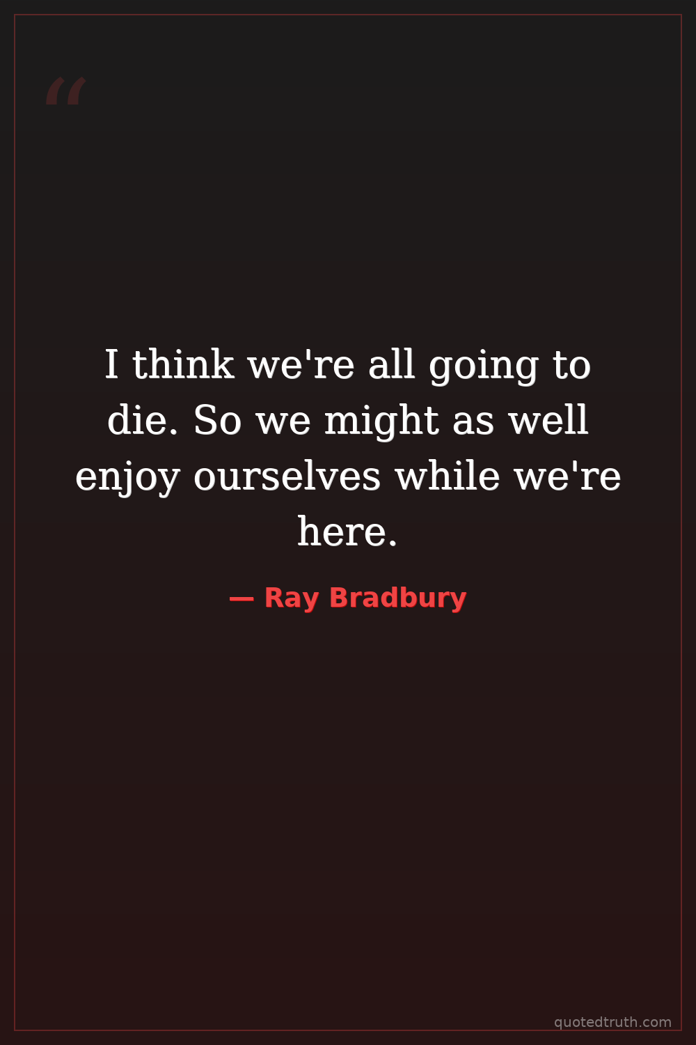 I think we're all going to die. So we might as well enjoy ourselves while we're here.