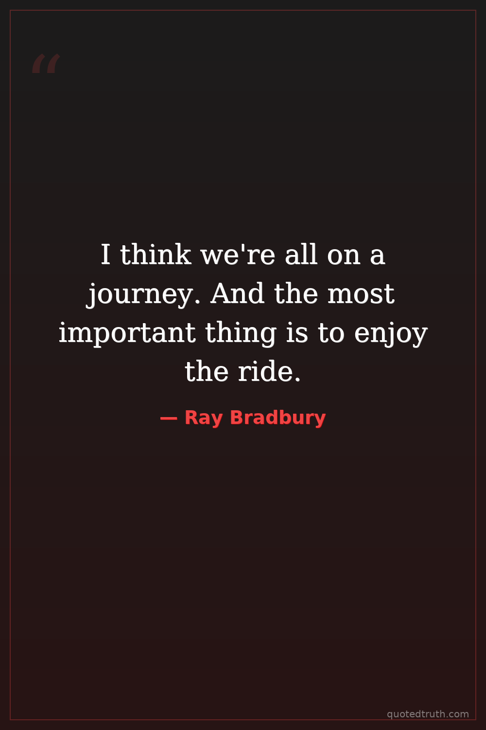 I think we're all on a journey. And the most important thing is to enjoy the ride.