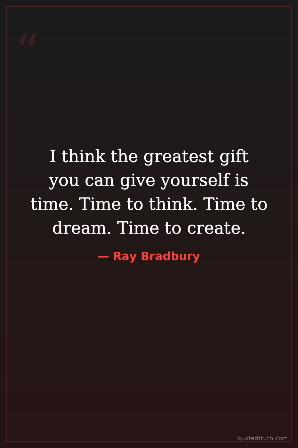 I think the greatest gift you can give yourself is time. Time to think. Time to dream. Time to create.