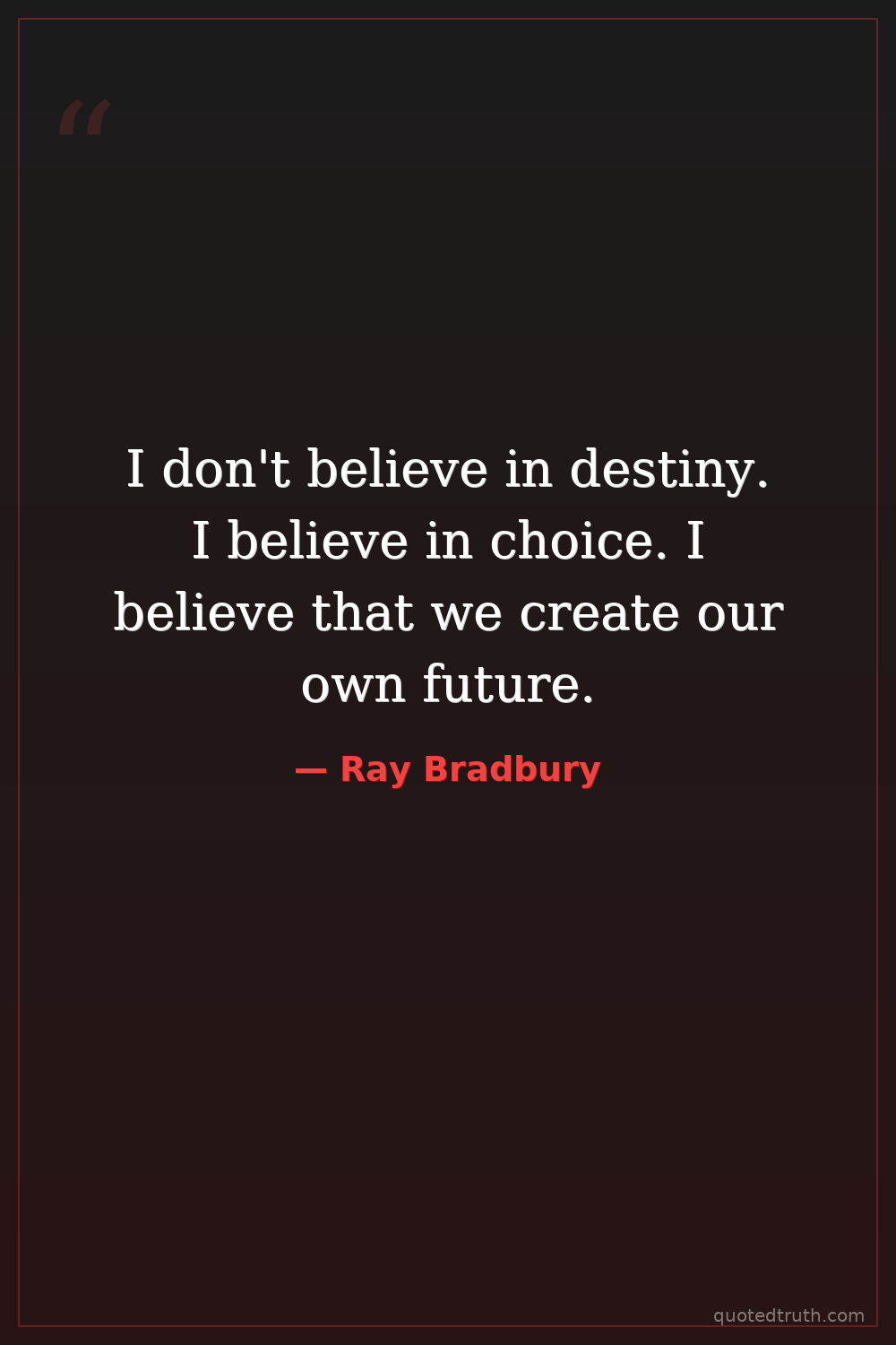 I don't believe in destiny. I believe in choice. I believe that we create our own future.