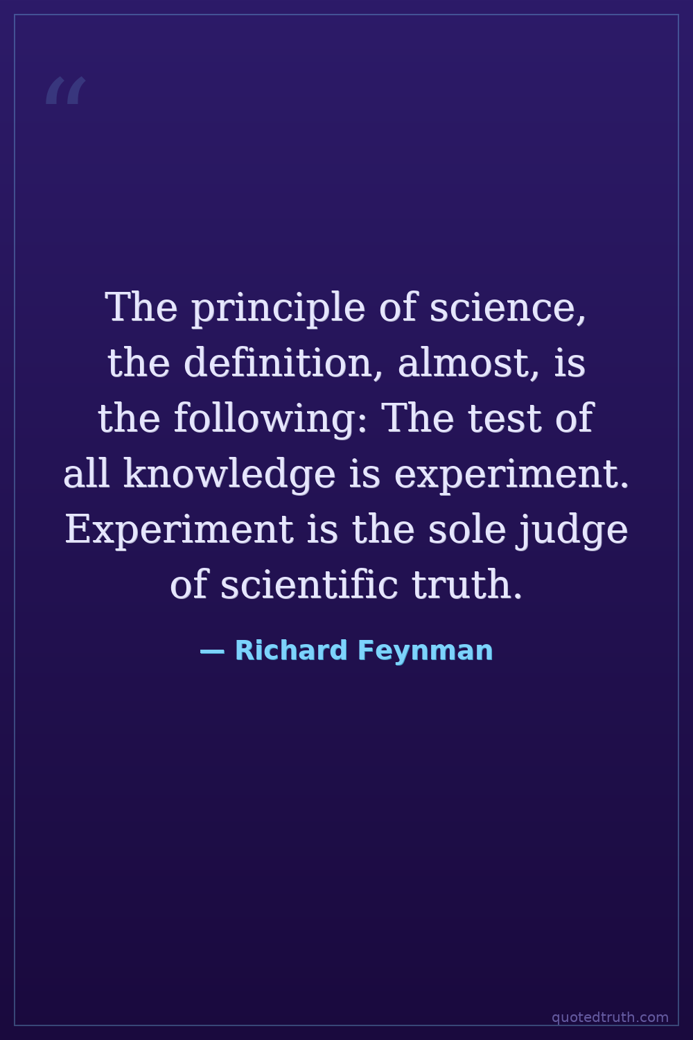 The principle of science, the definition, almost, is the following: The test of all knowledge is experiment. Experiment is the sole judge of scientific truth.