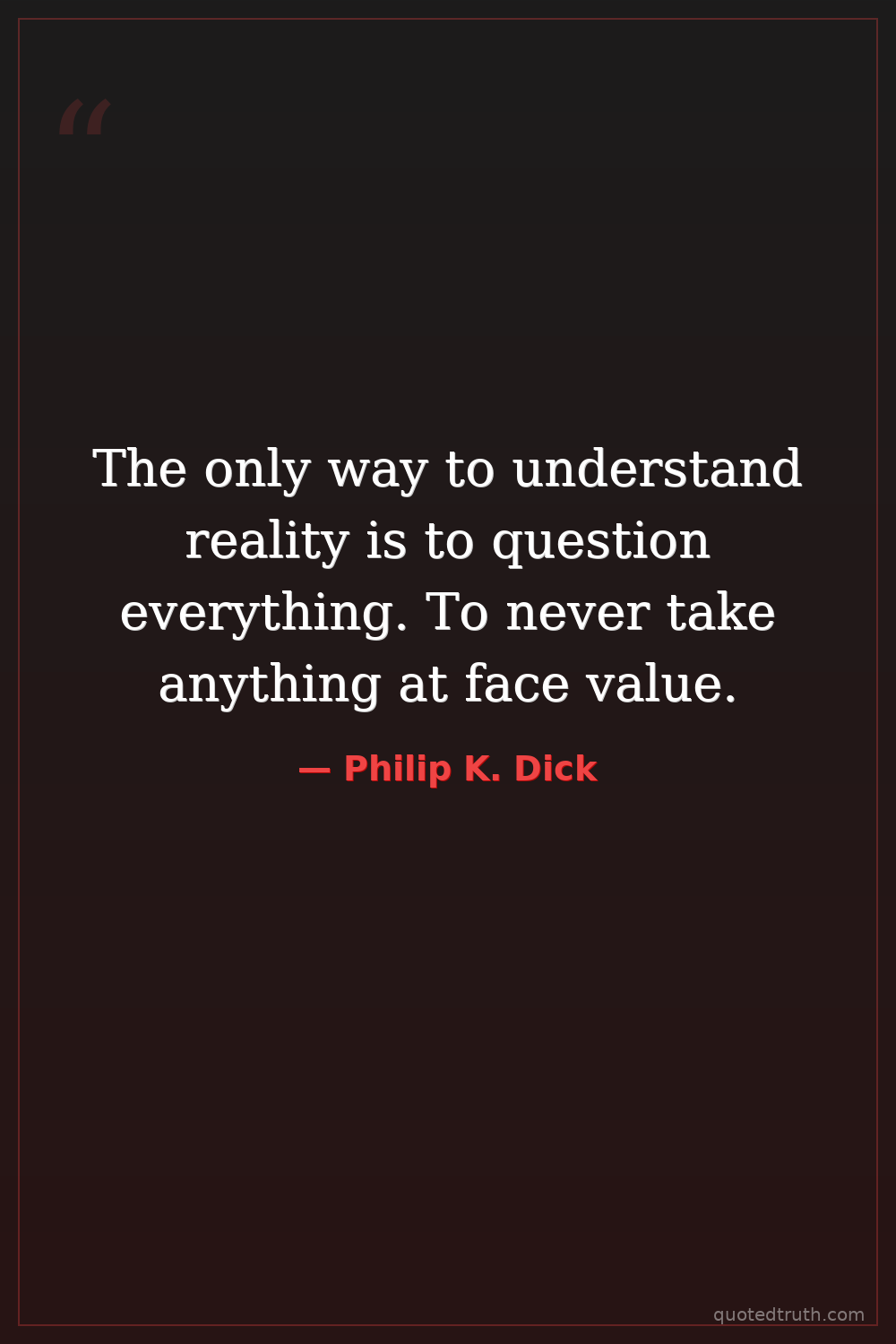 The only way to understand reality is to question everything. To never take anything at face value.