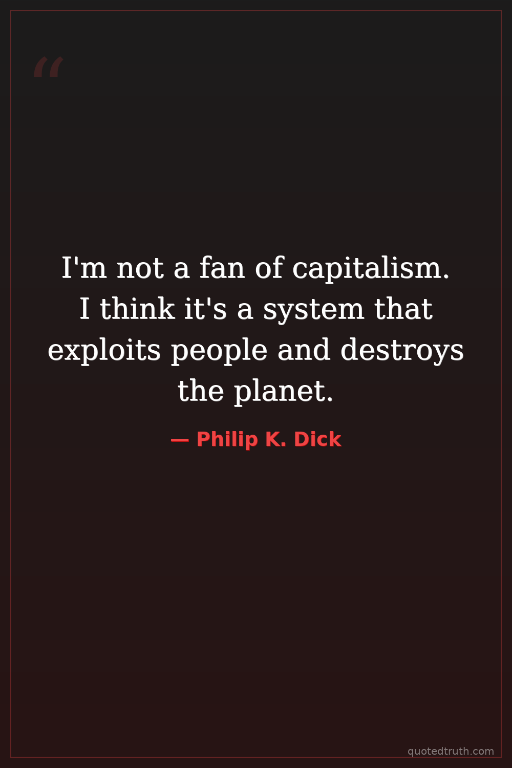 I'm not a fan of capitalism. I think it's a system that exploits people and destroys the planet.