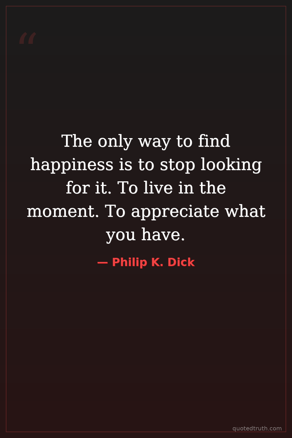 The only way to find happiness is to stop looking for it. To live in the moment. To appreciate what you have.