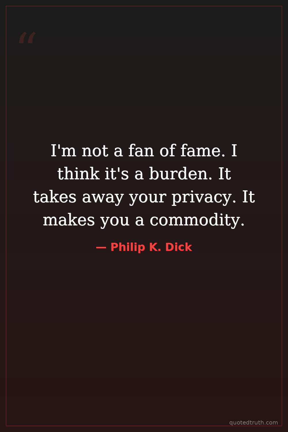 I'm not a fan of fame. I think it's a burden. It takes away your privacy. It makes you a commodity.