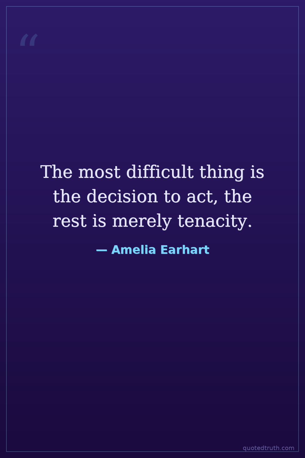 The most difficult thing is the decision to act, the rest is merely tenacity.