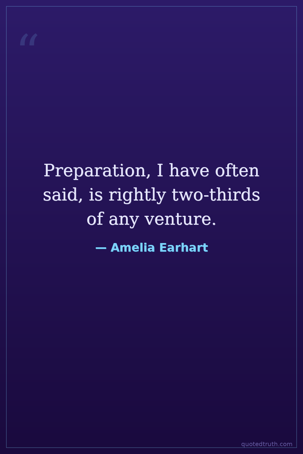 Preparation, I have often said, is rightly two-thirds of any venture.