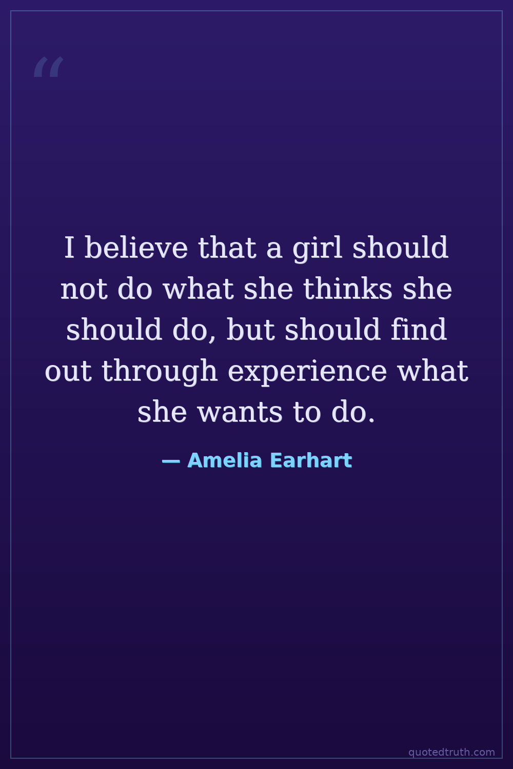 I believe that a girl should not do what she thinks she should do, but should find out through experience what she wants to do.