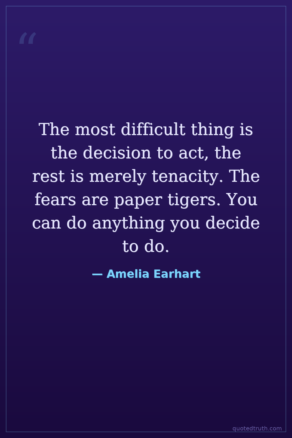 Strange & Unusual"The most difficult thing is the decision to act. The rest is merely tenacity. The fears are paper tigers. You can do anything you decide to do. You can act to change and control your life and the proc…"