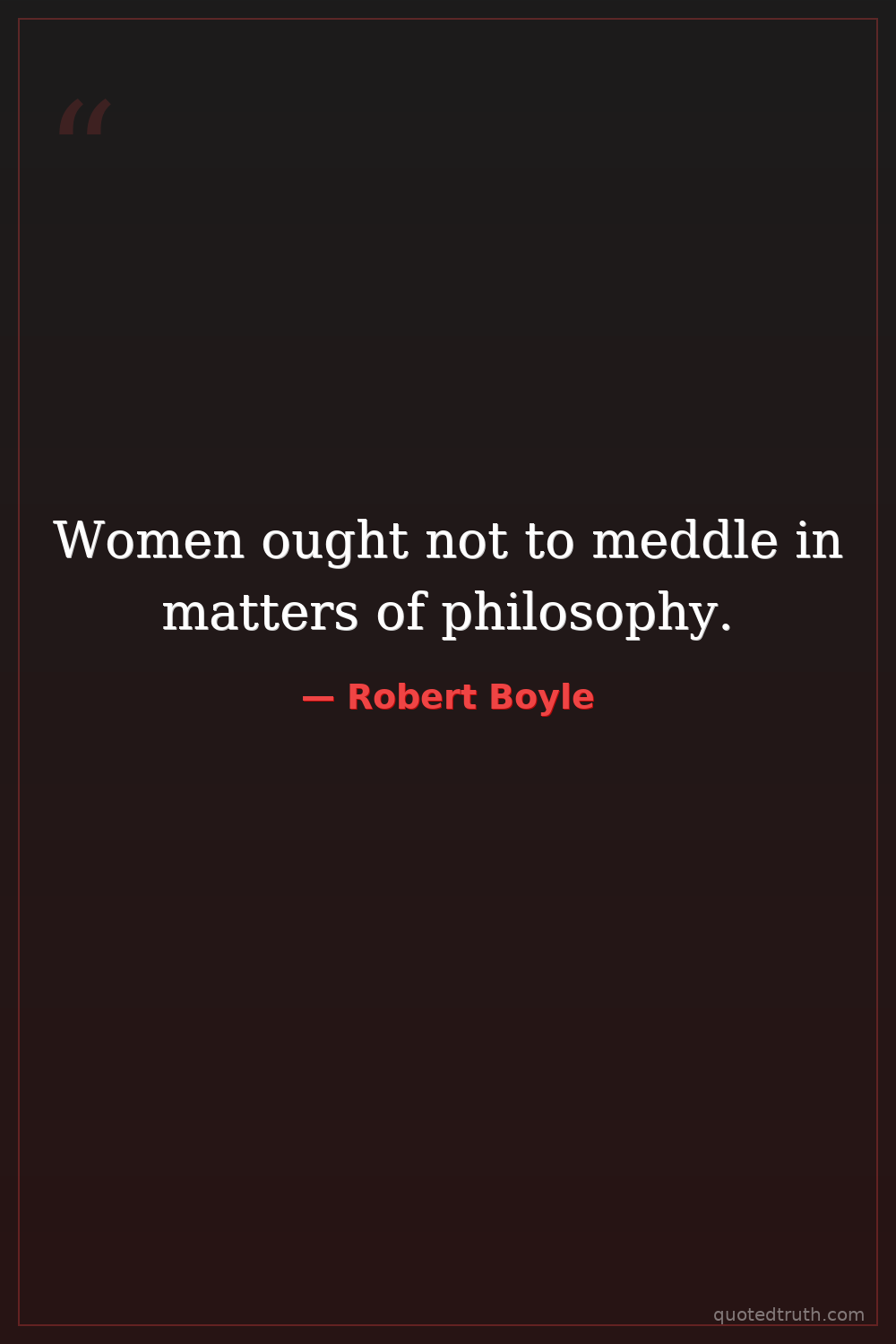 Women ought not to meddle in matters of philosophy.