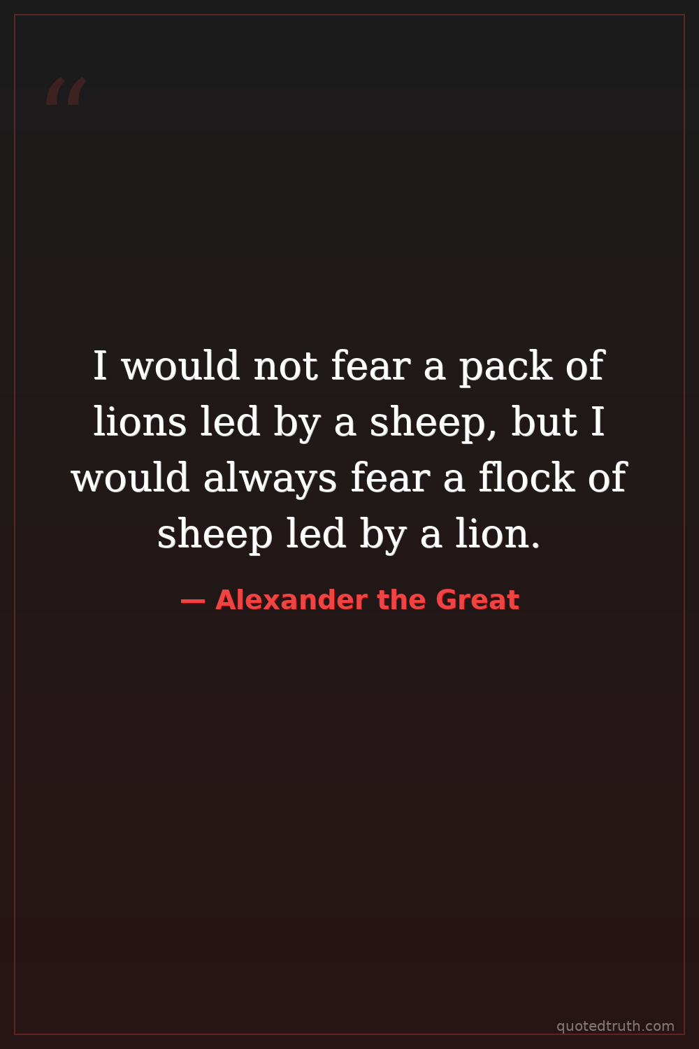 I would not fear a pack of lions led by a sheep, but I would always fear a flock of sheep led by a lion.