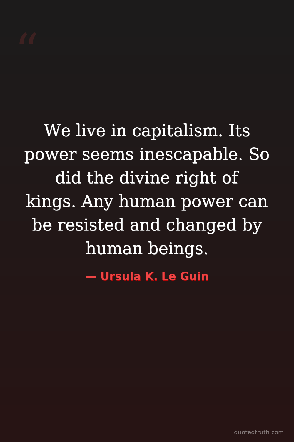 We live in capitalism. Its power seems inescapable. So did the divine right of kings. Any human power can be resisted and changed by human beings.