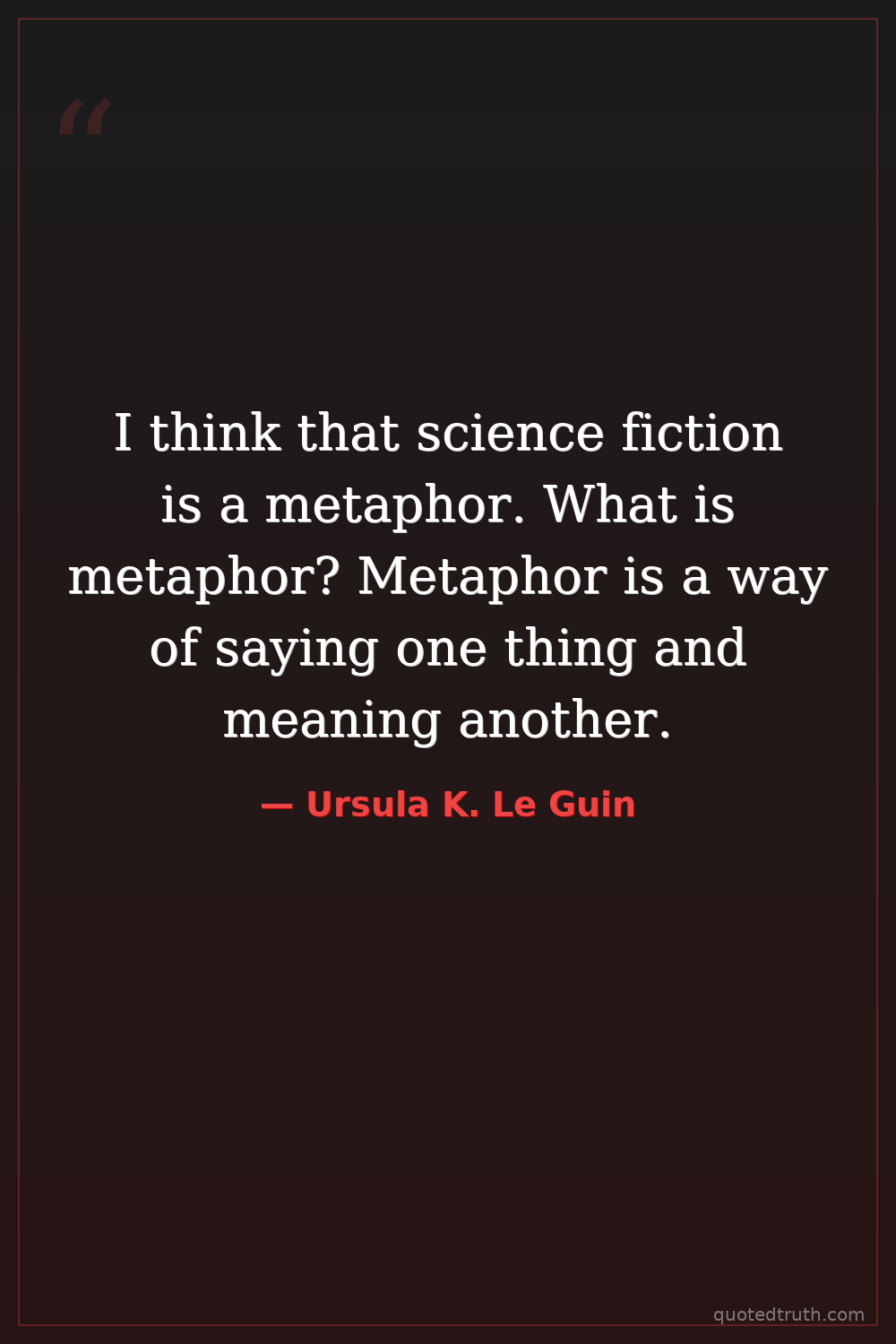 I think that science fiction is a metaphor. What is metaphor? Metaphor is a way of saying one thing and meaning another.
