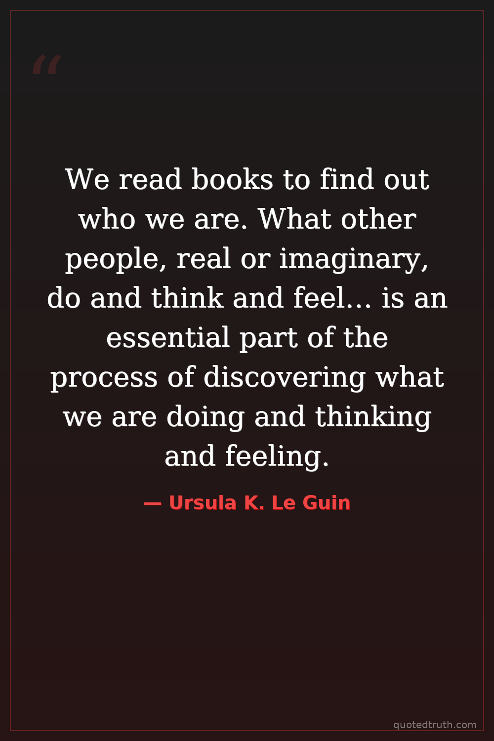 We read books to find out who we are. What other people, real or imaginary, do and think and feel… is an essential part of the process of discovering what we are doing and thinking and feeling.