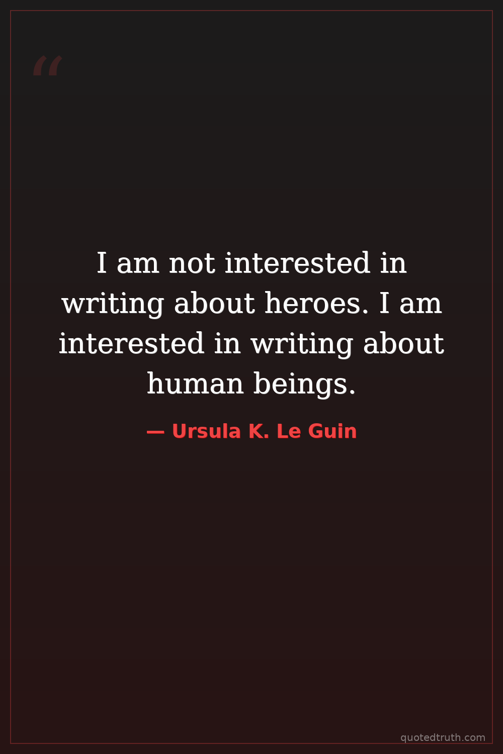 I am not interested in writing about heroes. I am interested in writing about human beings.