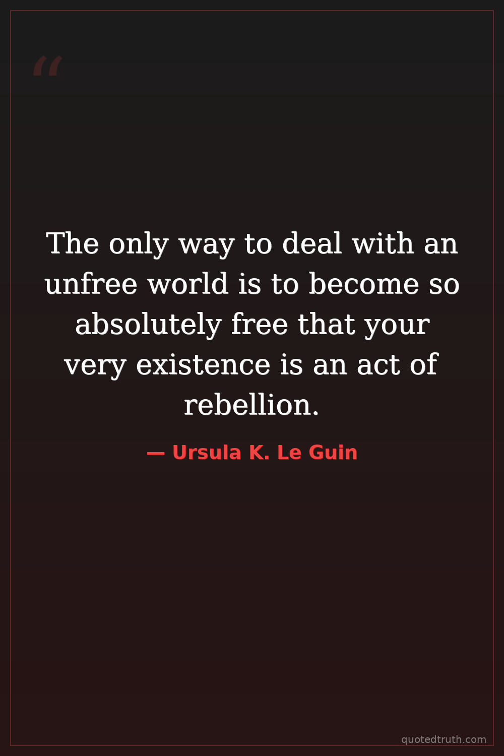 The only way to deal with an unfree world is to become so absolutely free that your very existence is an act of rebellion.