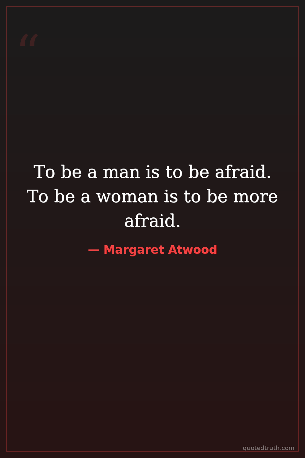 To be a man is to be afraid. To be a woman is to be more afraid.