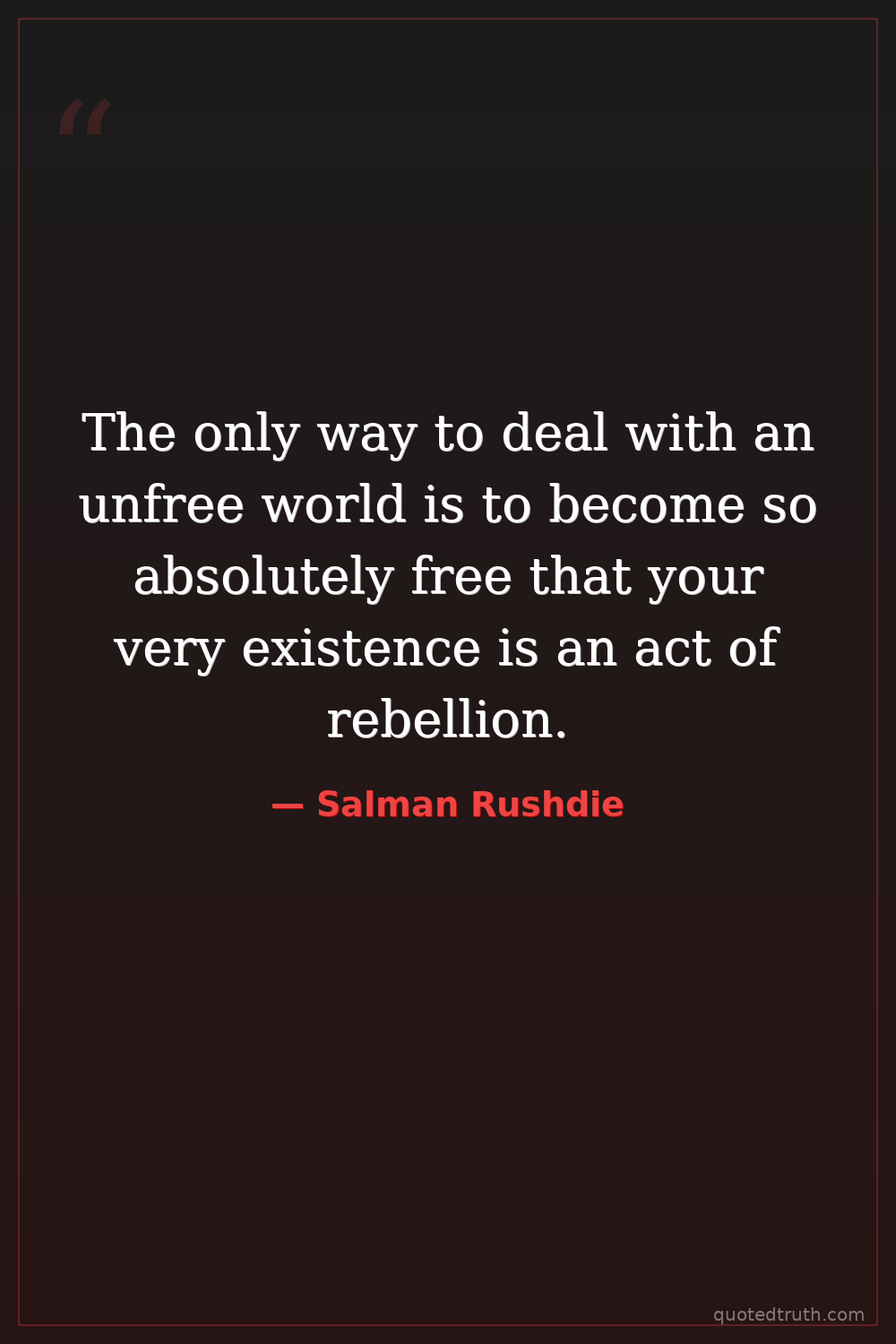 The only way to deal with an unfree world is to become so absolutely free that your very existence is an act of rebellion.
