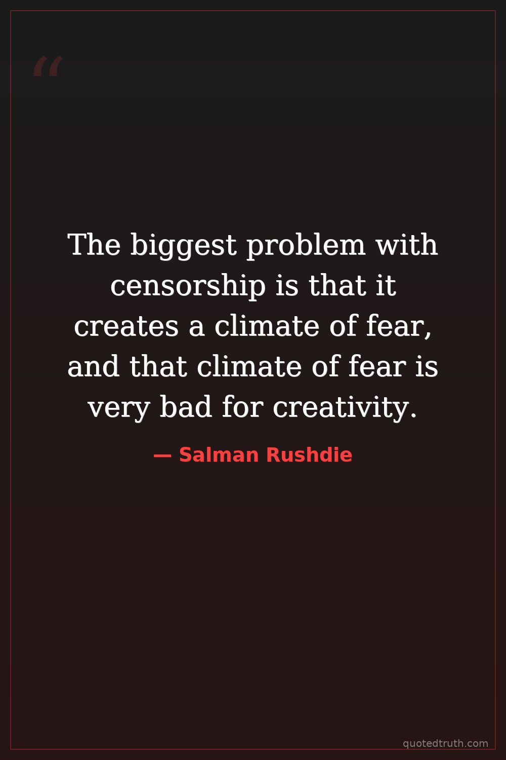 The biggest problem with censorship is that it creates a climate of fear, and that climate of fear is very bad for creativity.