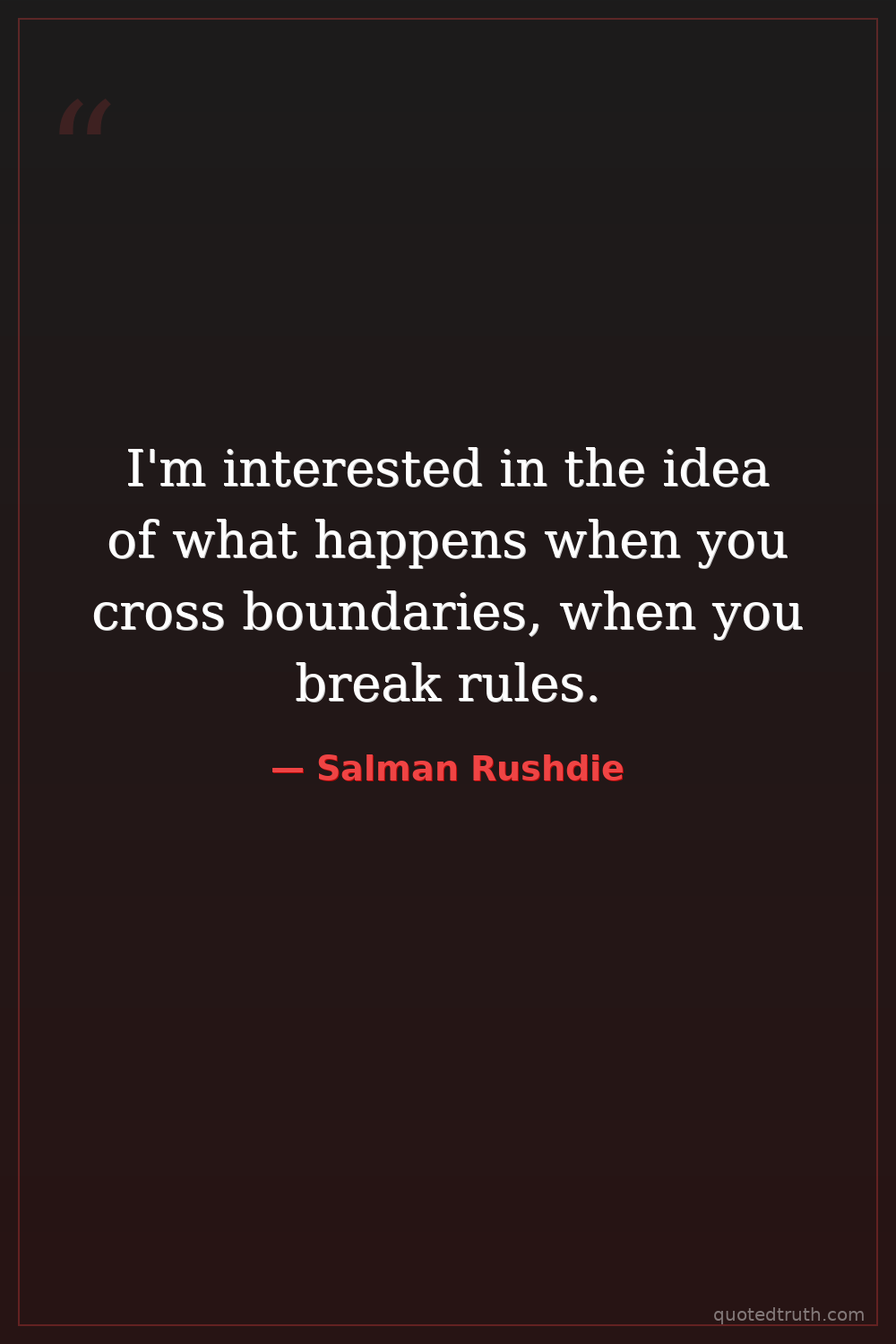 I'm interested in the idea of what happens when you cross boundaries, when you break rules.