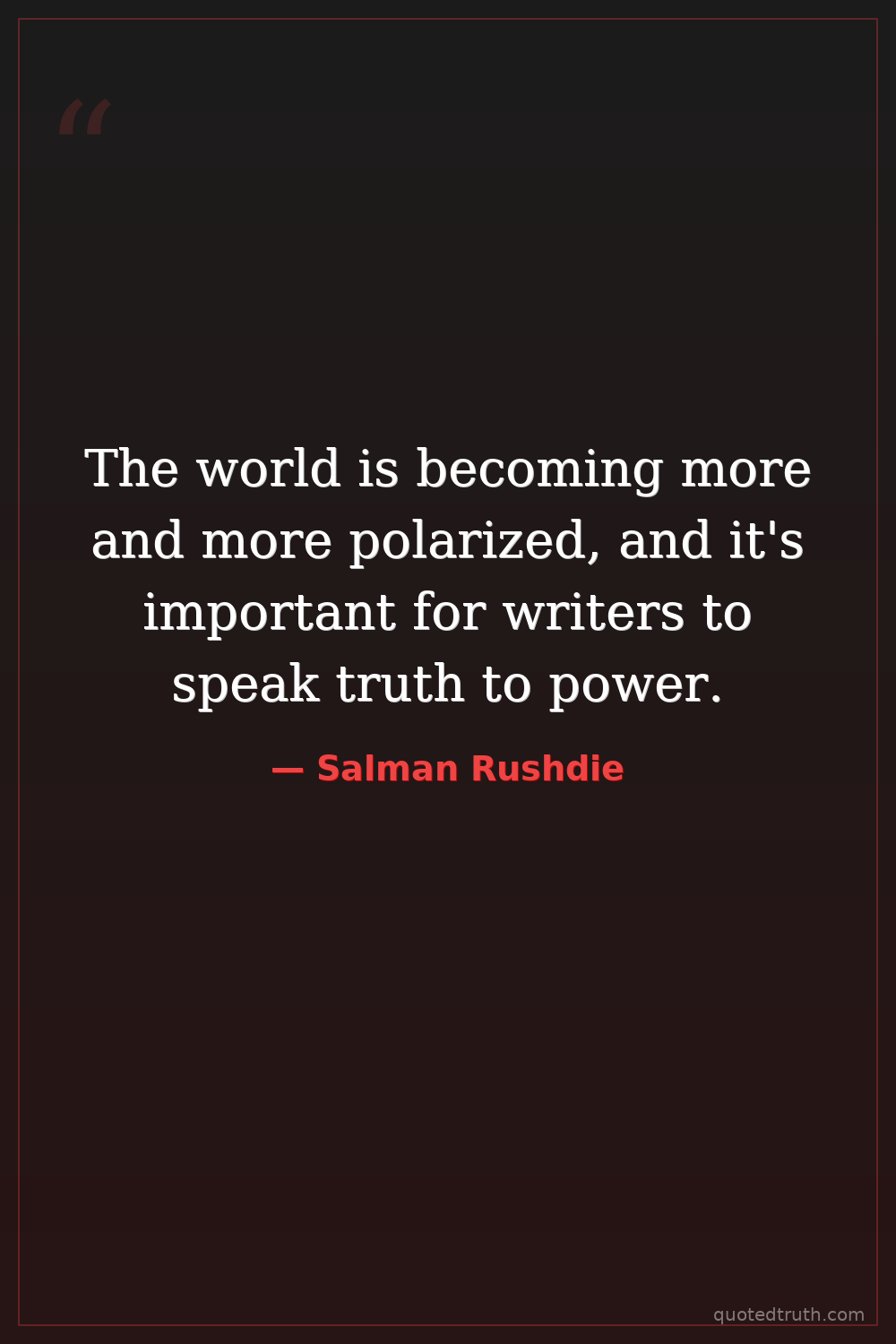 The world is becoming more and more polarized, and it's important for writers to speak truth to power.