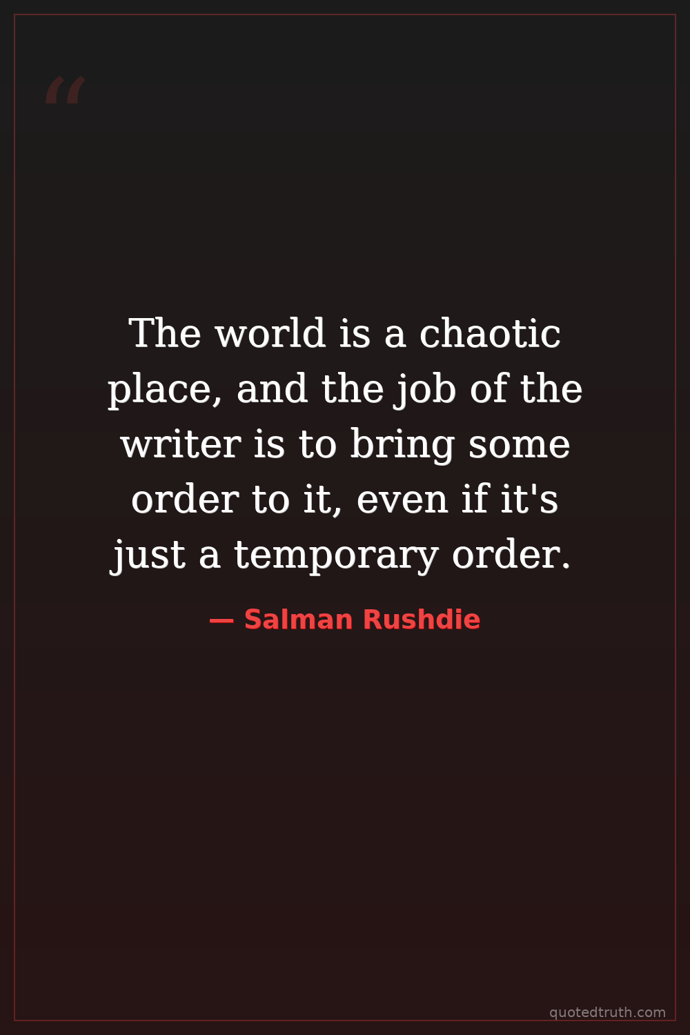 The world is a chaotic place, and the job of the writer is to bring some order to it, even if it's just a temporary order.