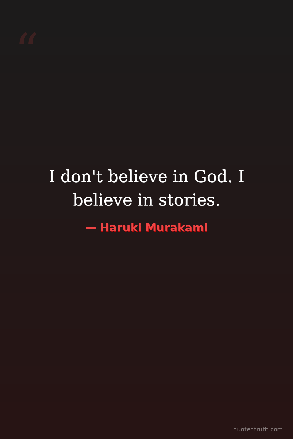 I don't believe in God. I believe in stories.