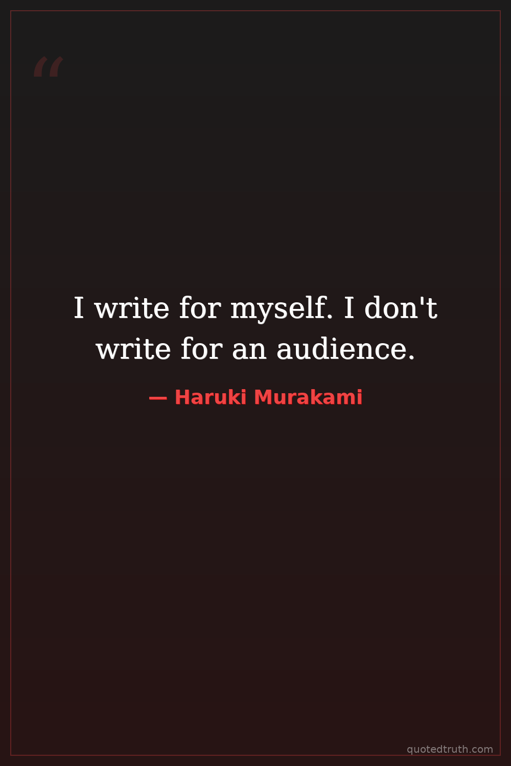 I write for myself. I don't write for an audience.