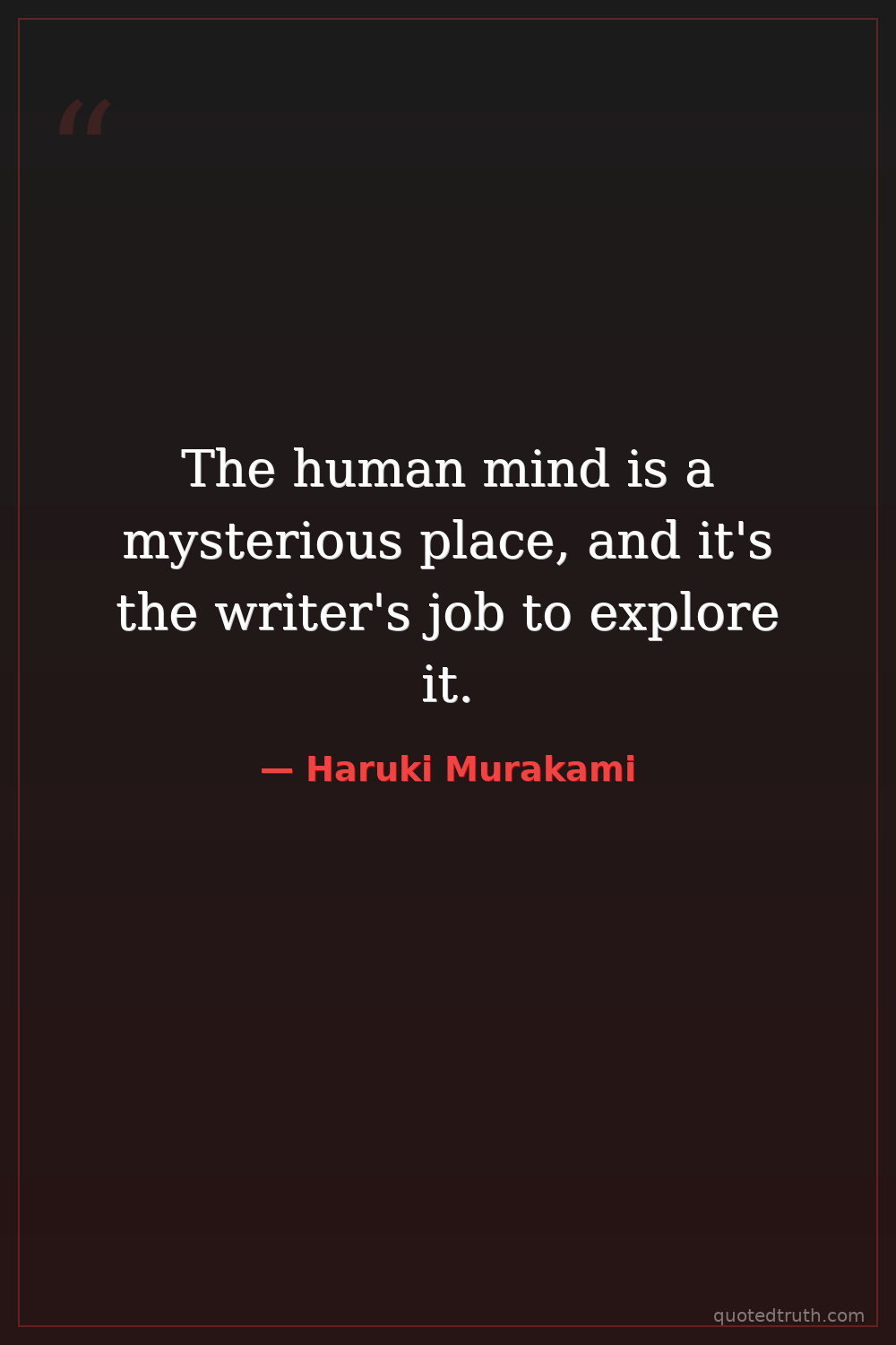 The human mind is a mysterious place, and it's the writer's job to explore it.
