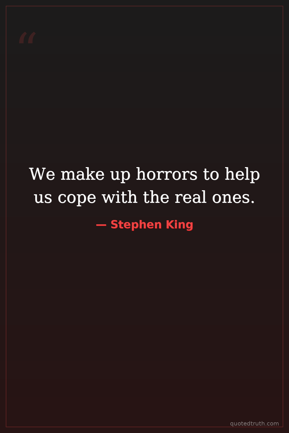 We make up horrors to help us cope with the real ones.
