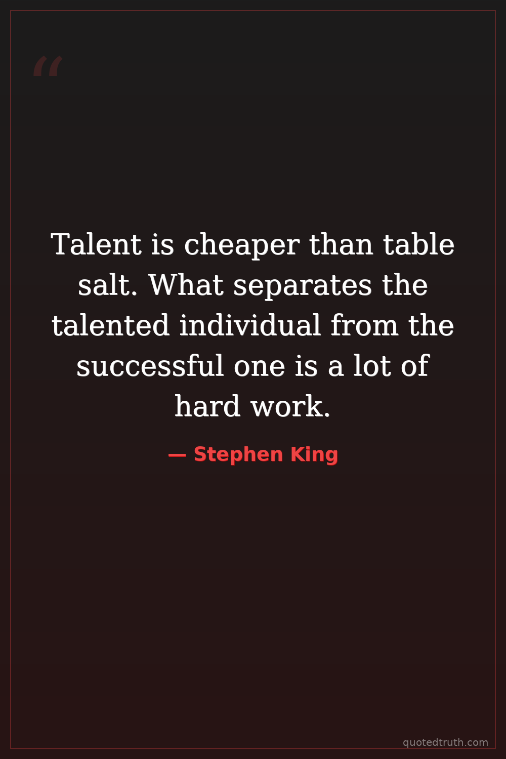 Talent is cheaper than table salt. What separates the talented individual from the successful one is a lot of hard work.