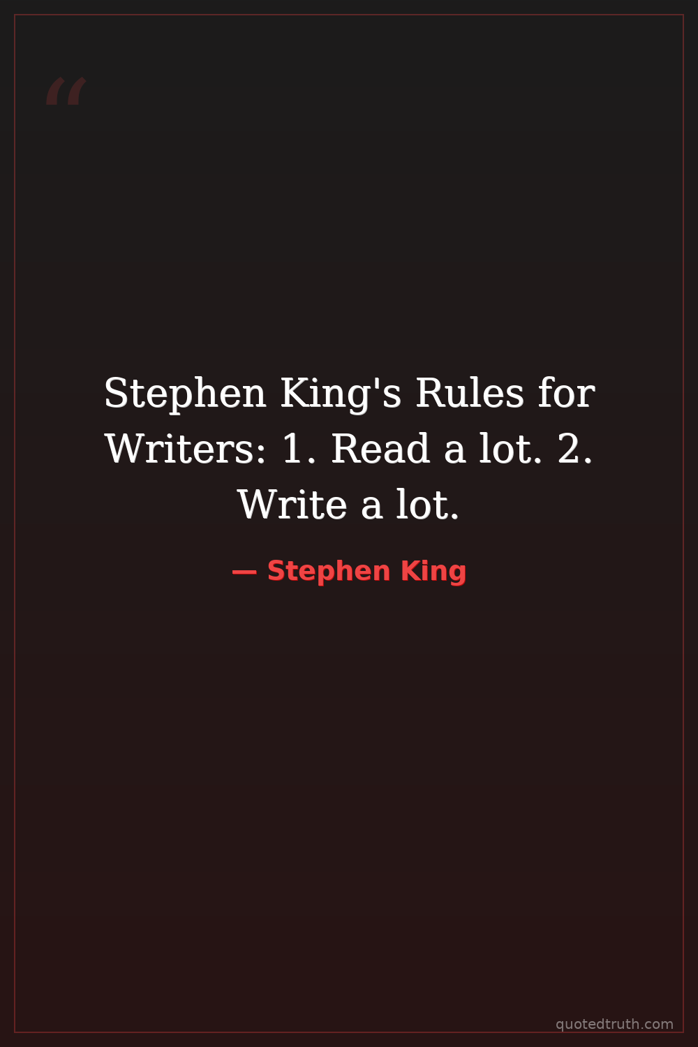 Stephen King's Rules for Writers: 1. Read a lot. 2. Write a lot.