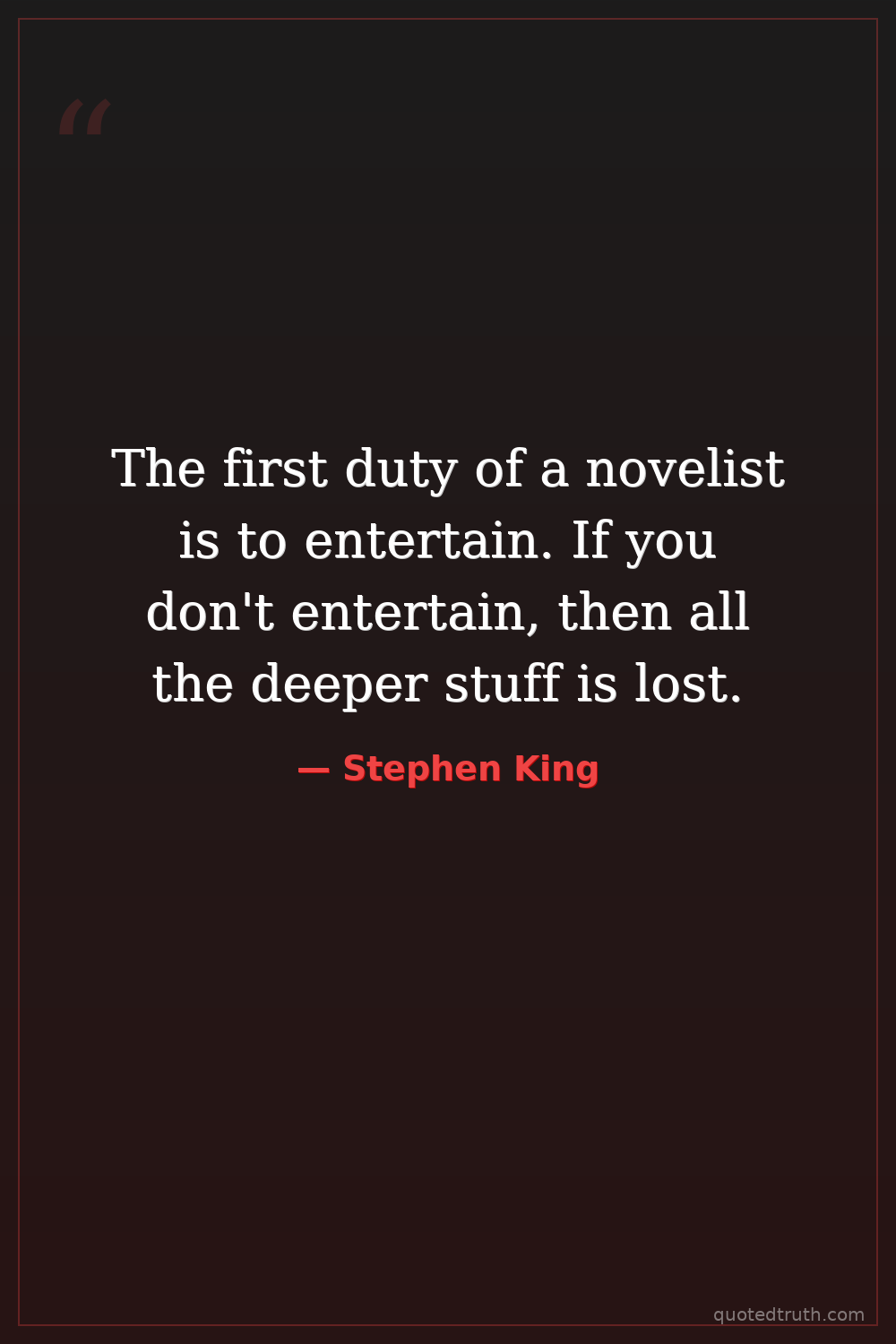 The first duty of a novelist is to entertain. If you don't entertain, then all the deeper stuff is lost.
