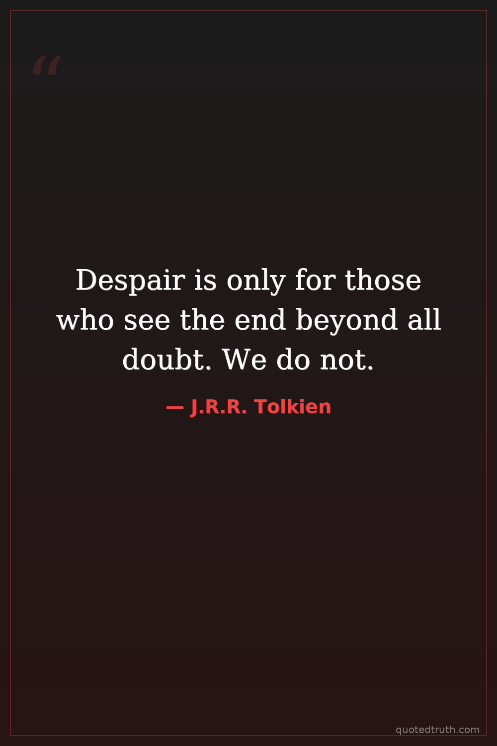 Despair is only for those who see the end beyond all doubt. We do not.