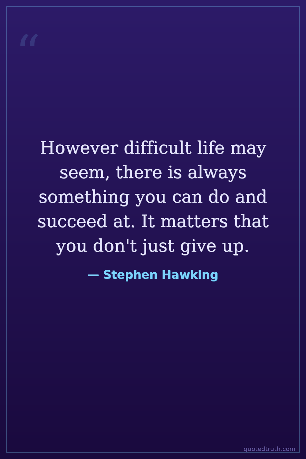 However difficult life may seem, there is always something you can do and succeed at. It matters that you don't just give up.