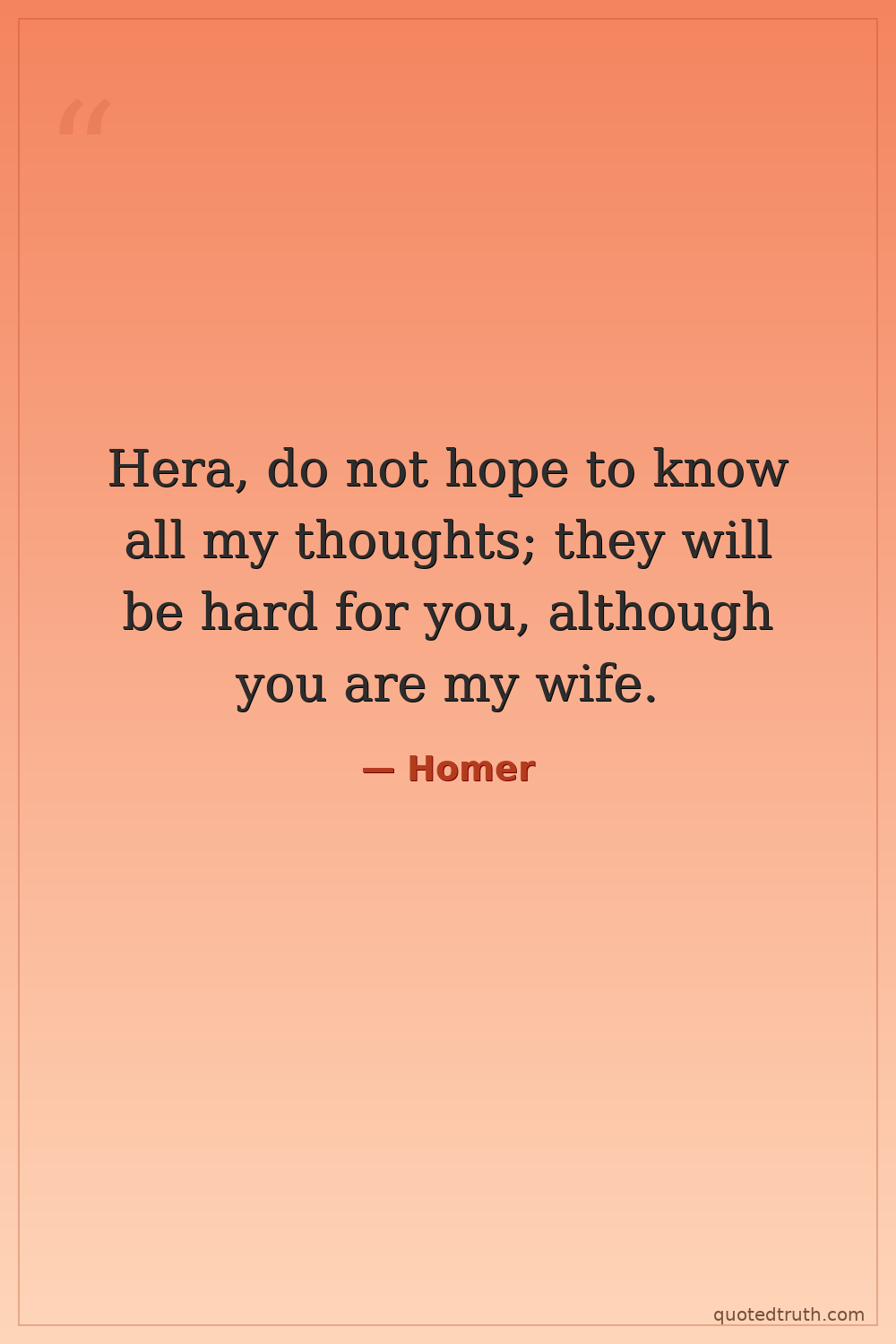 Hera, do not hope to know all my thoughts; they will be hard for you, although you are my wife.