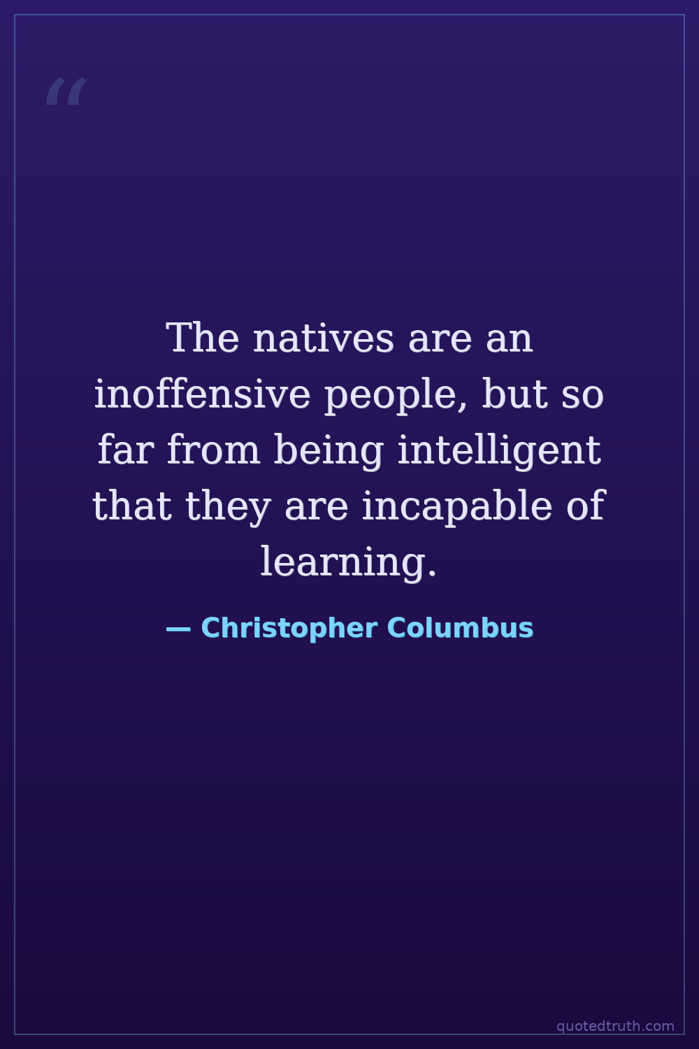 The natives are an inoffensive people, but so far from being intelligent that they are incapable of learning.