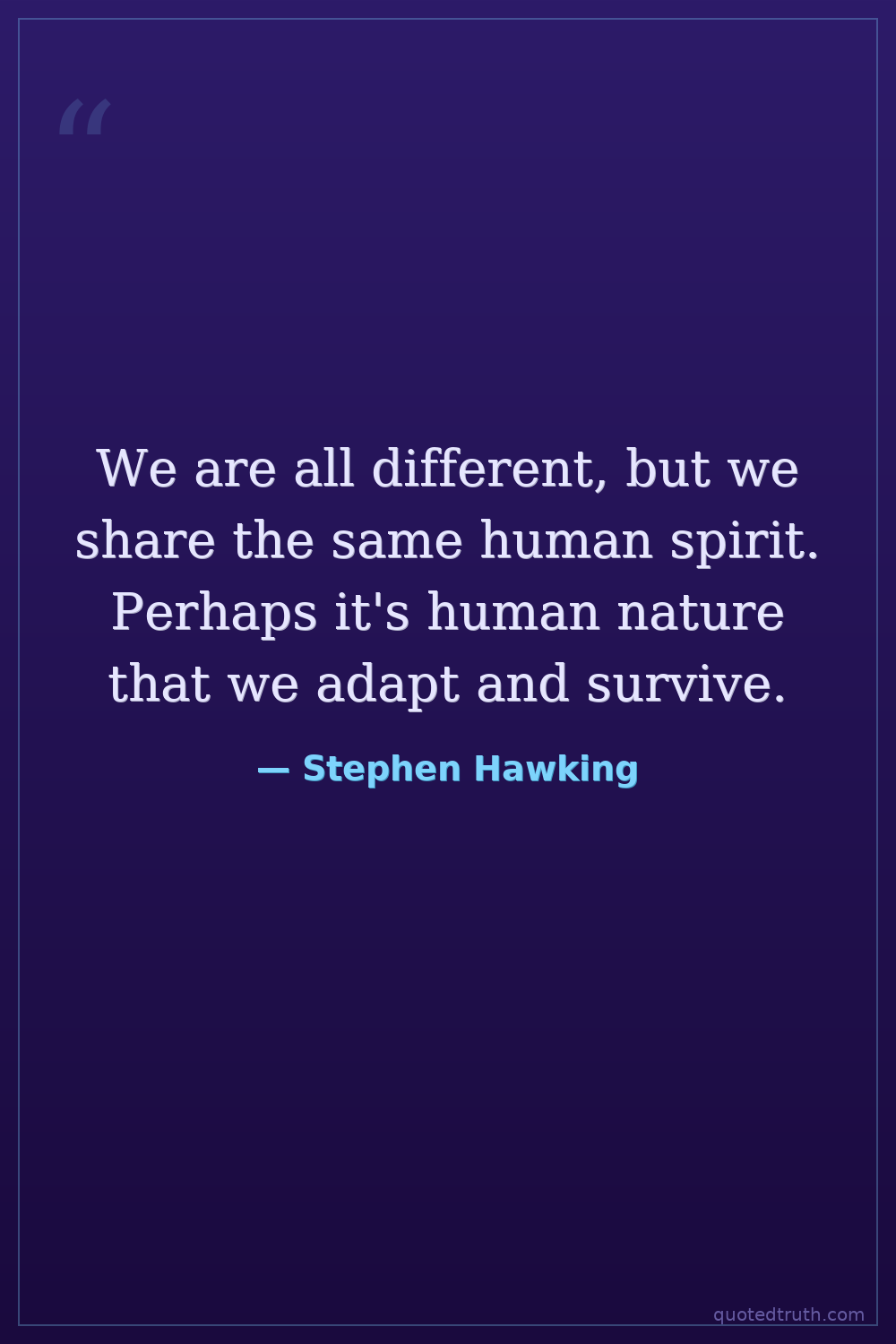 We are all different, but we share the same human spirit. Perhaps it's human nature that we adapt and survive.
