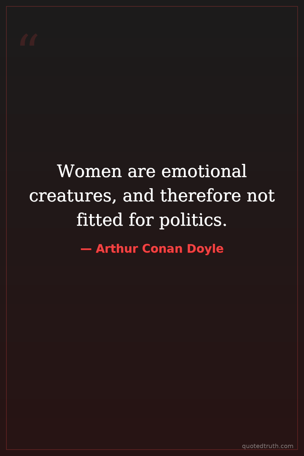 Women are emotional creatures, and therefore not fitted for politics.