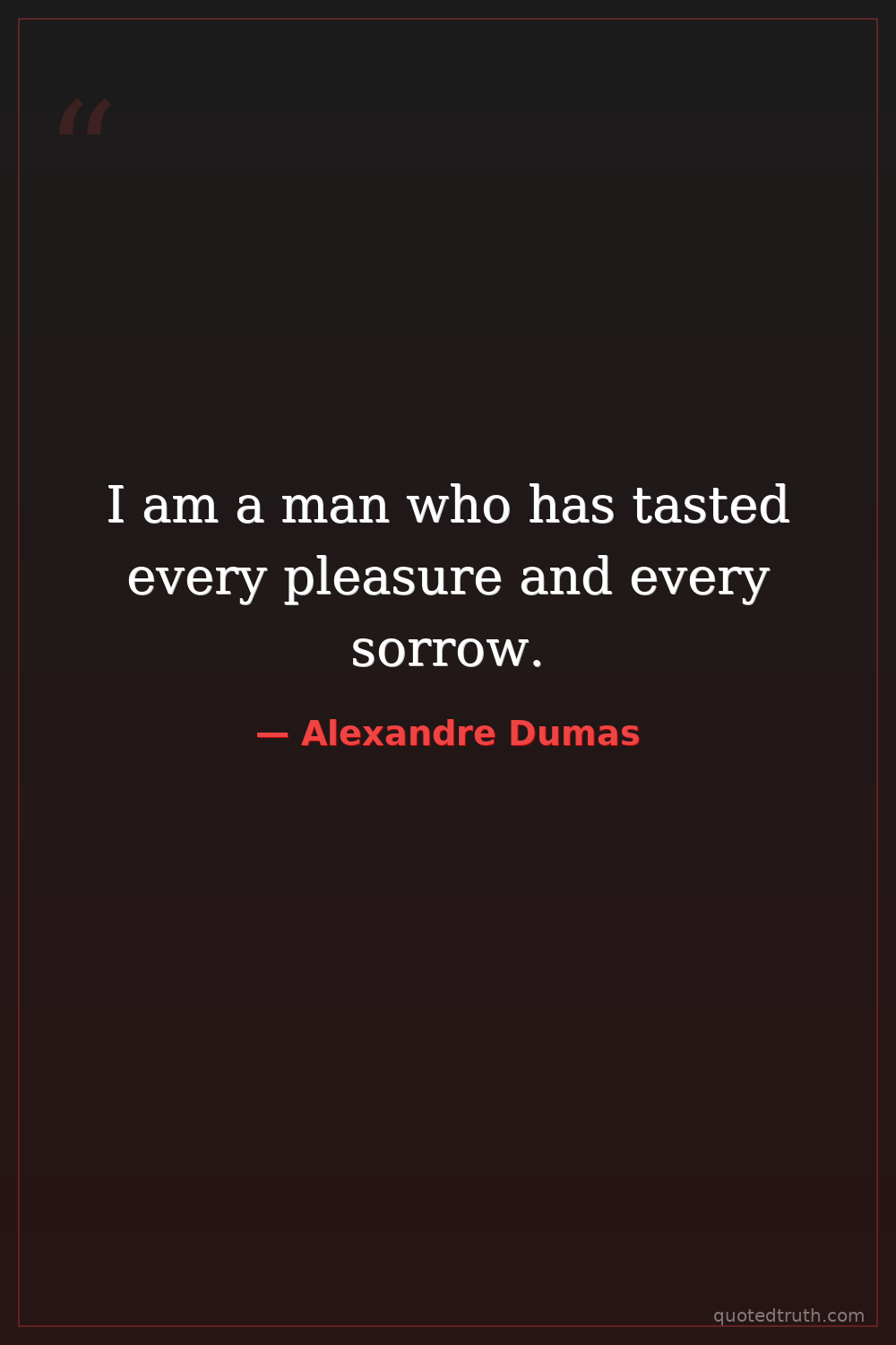 I am a man who has tasted every pleasure and every sorrow.