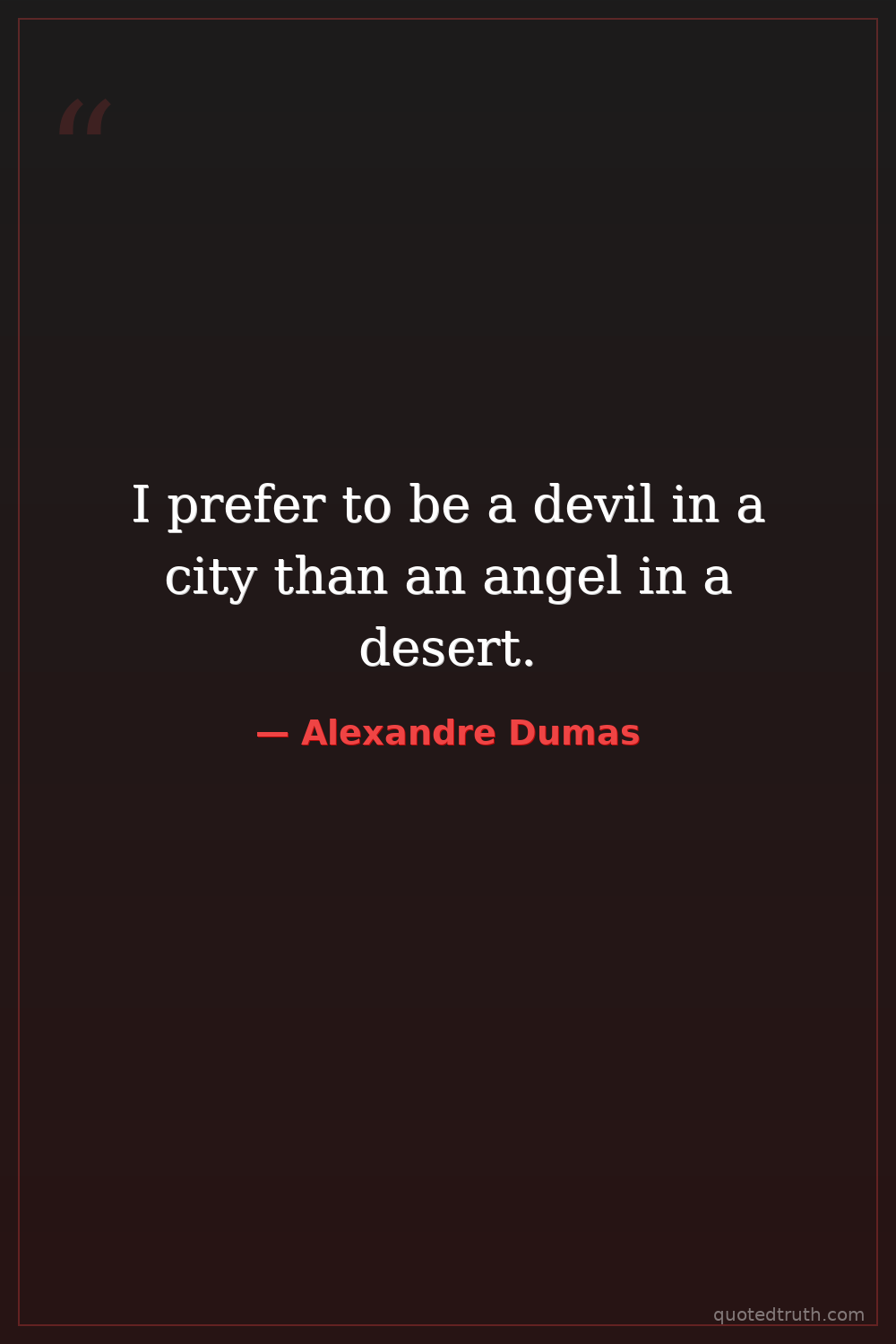 I prefer to be a devil in a city than an angel in a desert.