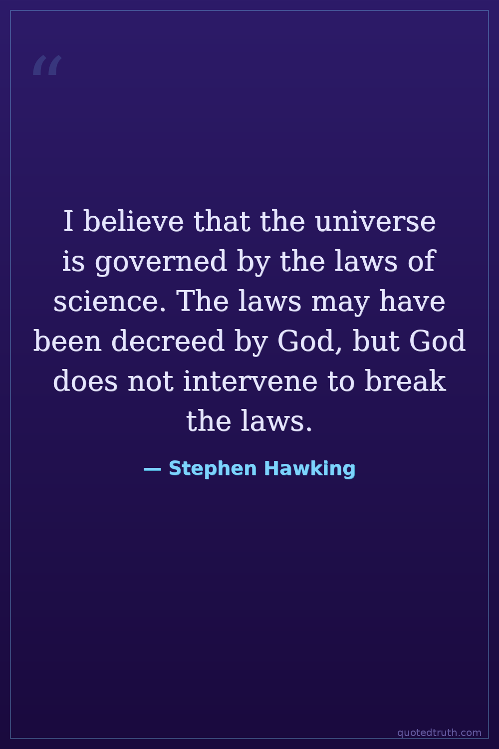 I believe that the universe is governed by the laws of science. The laws may have been decreed by God, but God does not intervene to break the laws.