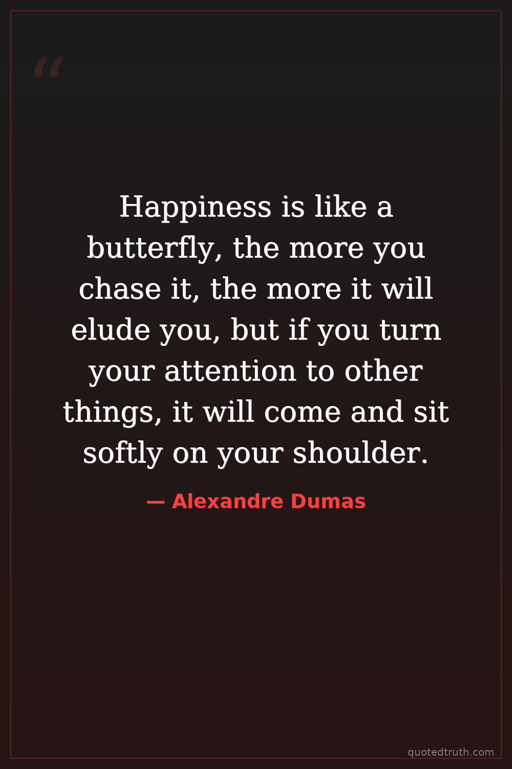 Happiness is like a butterfly, the more you chase it, the more it will elude you, but if you turn your attention to other things, it will come and sit softly on your shoulder.