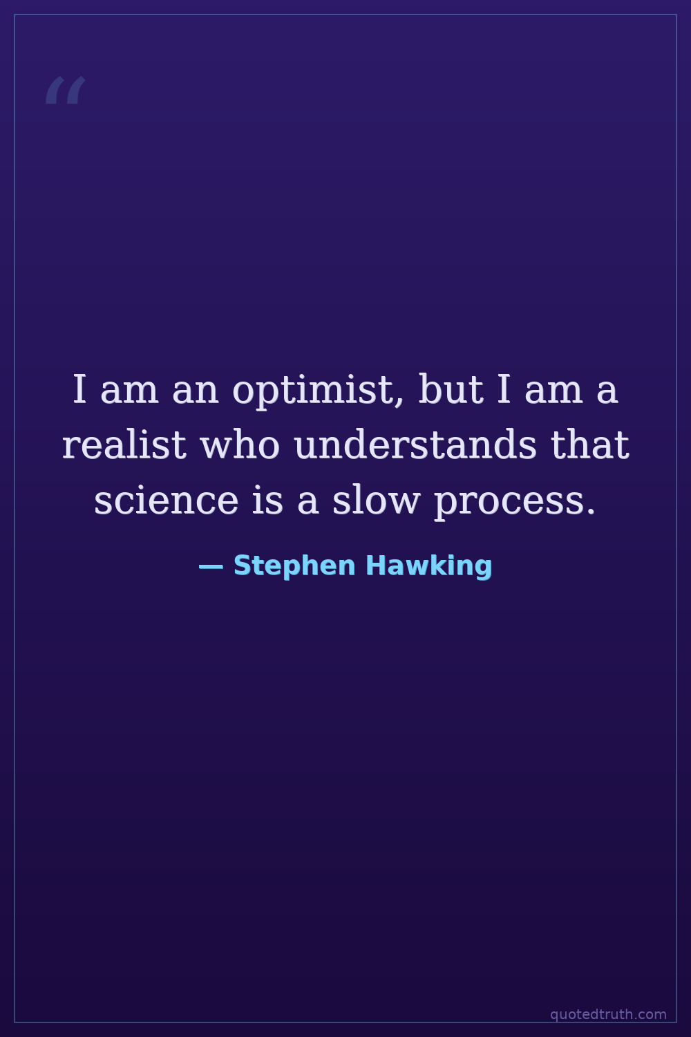I am an optimist, but I am a realist who understands that science is a slow process.