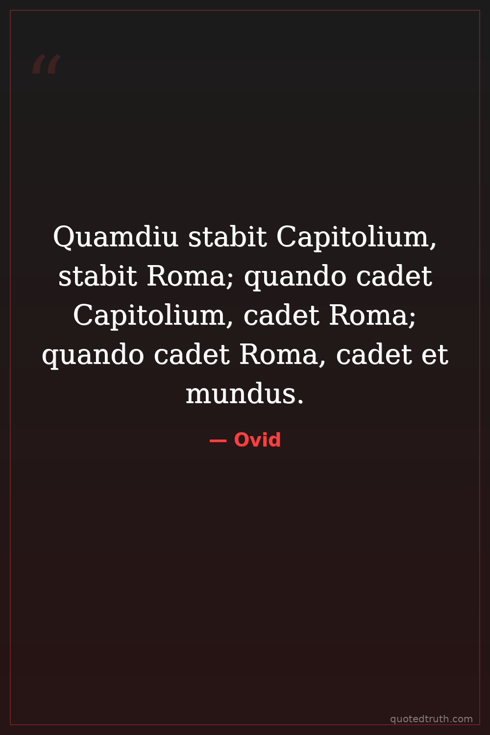 Quamdiu stabit Capitolium, stabit Roma; quando cadet Capitolium, cadet Roma; quando cadet Roma, cadet et mundus.