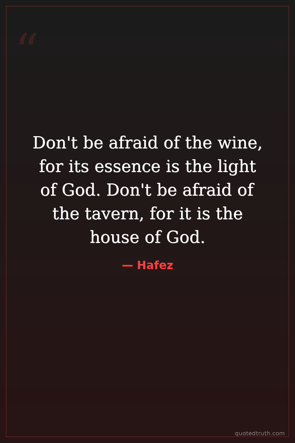 Don't be afraid of the wine, for its essence is the light of God. Don't be afraid of the tavern, for it is the house of God.
