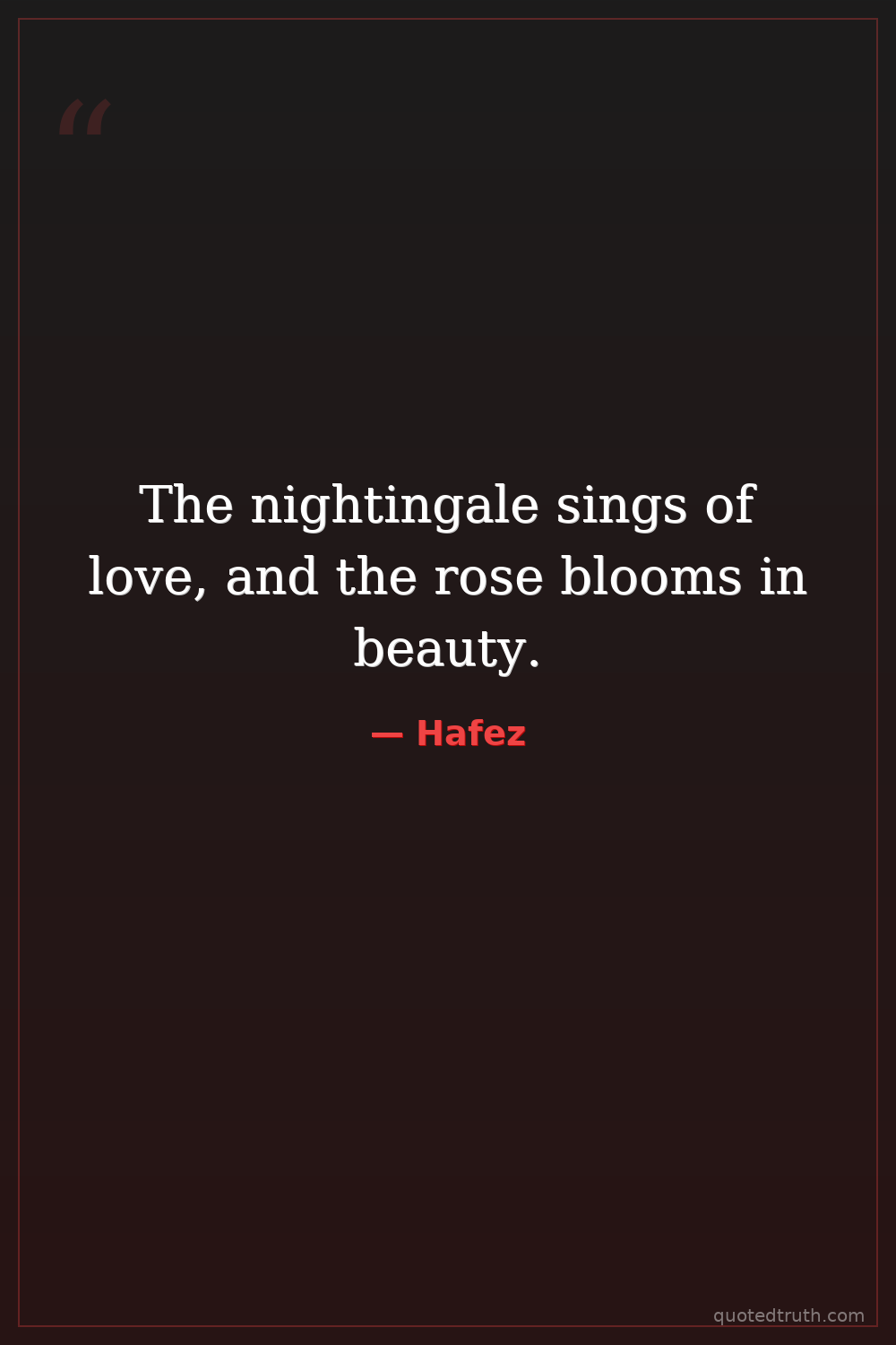 The nightingale sings of love, and the rose blooms in beauty.