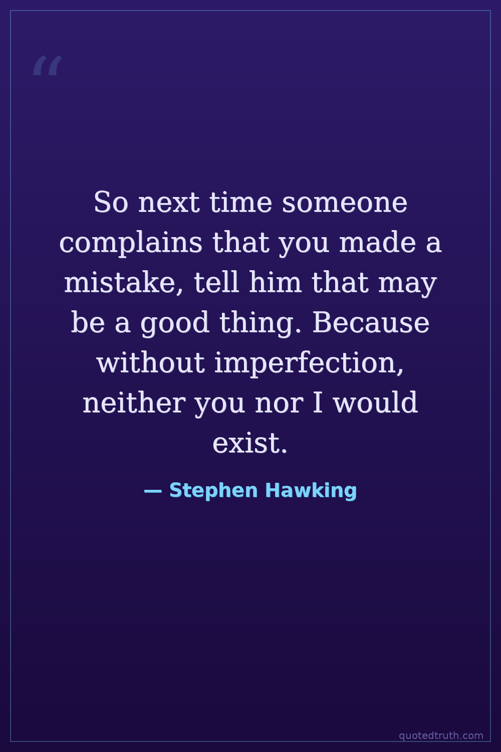 So next time someone complains that you made a mistake, tell him that may be a good thing. Because without imperfection, neither you nor I would exist.