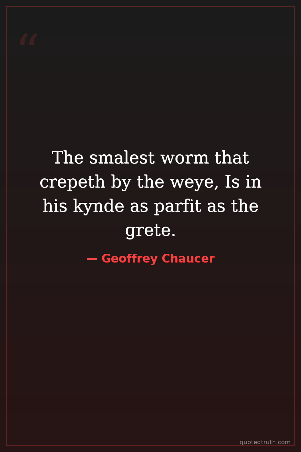 The smalest worm that crepeth by the weye, Is in his kynde as parfit as the grete.